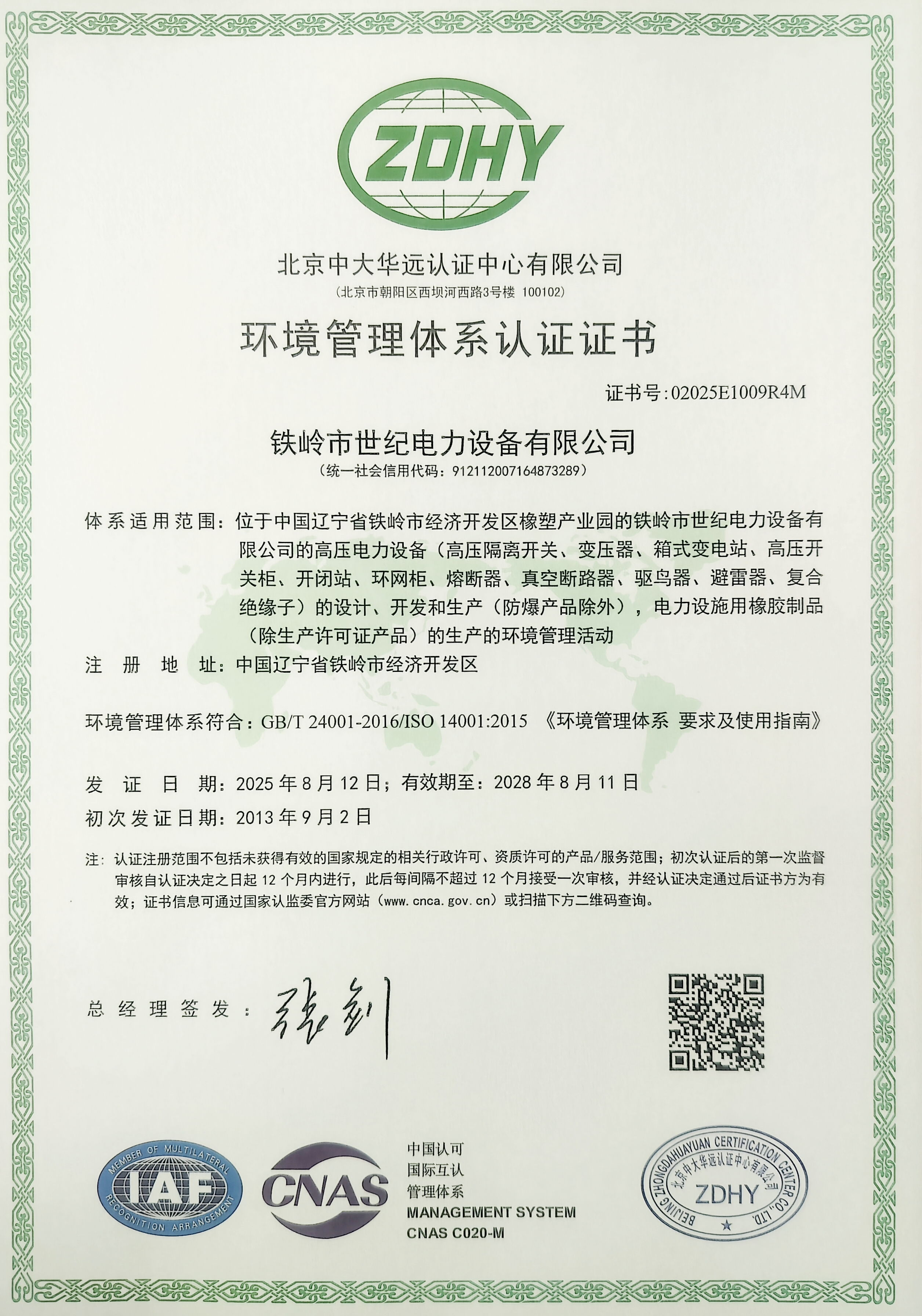 鐵嶺市世紀(jì)電力設(shè)備有限公司是集科研開(kāi)發(fā)、生產(chǎn)制造、用戶(hù)服務(wù)于一體的國(guó)家高新技術(shù)企業(yè),始建于1999年,位于鐵嶺經(jīng)濟(jì)開(kāi)發(fā)區(qū),占地面積5萬(wàn)余平方米,建筑面積2萬(wàn)余平方米。主要從事國(guó)家電網(wǎng)配套戶(hù)外高低壓隔離開(kāi)關(guān)、電力電纜、變壓器成套裝置、高低壓開(kāi)關(guān)柜、箱式變電站、絕緣子等產(chǎn)品的研發(fā)、生產(chǎn)和銷(xiāo)售。公司現(xiàn)有國(guó)家發(fā)明專(zhuān)利6項(xiàng)、實(shí)用新型專(zhuān)利9項(xiàng),公司通過(guò)了ISO9001國(guó)際質(zhì)量管理體系認(rèn)證、ISO14001環(huán)境管理體系認(rèn)證和ISO 45001職業(yè)健康安全體系認(rèn)證。