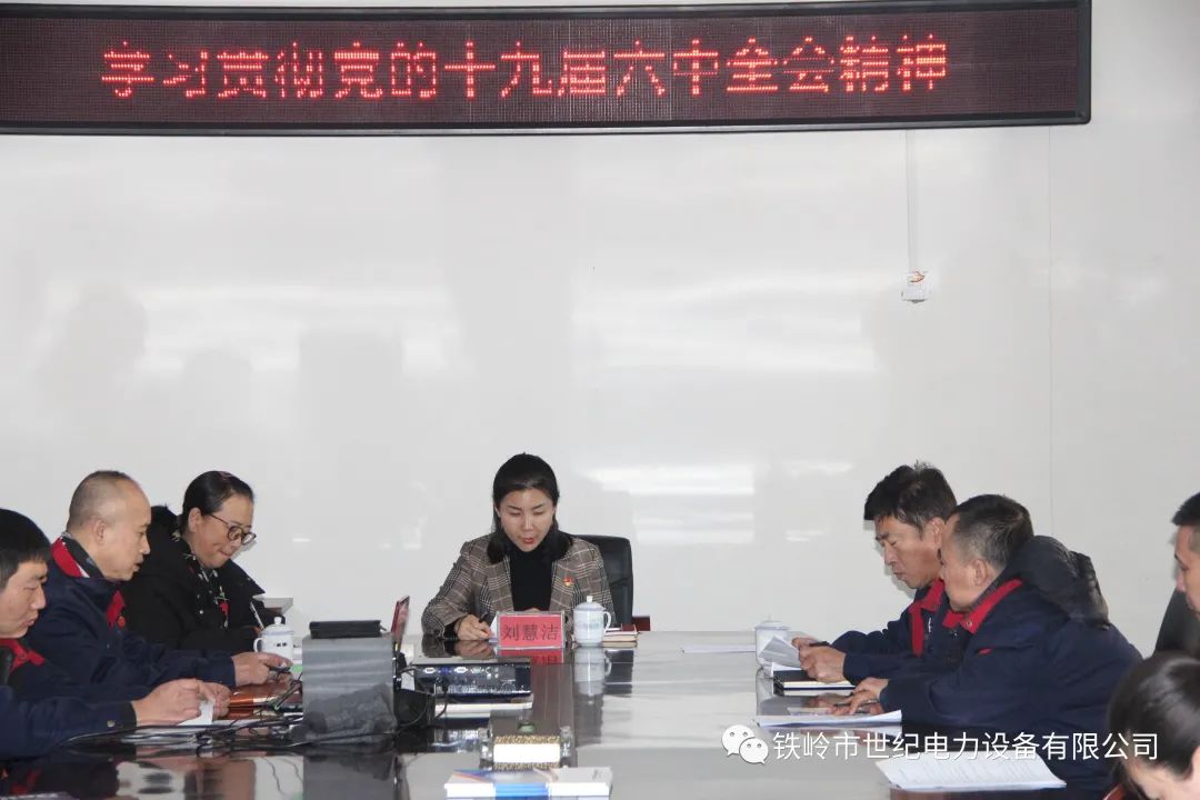 12月11日下午,鐵嶺市世紀電力設(shè)備有限公司黨支部在二樓會議室召開專題會議,傳達學習貫徹黨的十九屆六中全會精神,公司黨支部書記、總經(jīng)理劉慧潔主持會議并講話,公司黨支部副書記閆紅煒、部分黨員代表出席會議。
